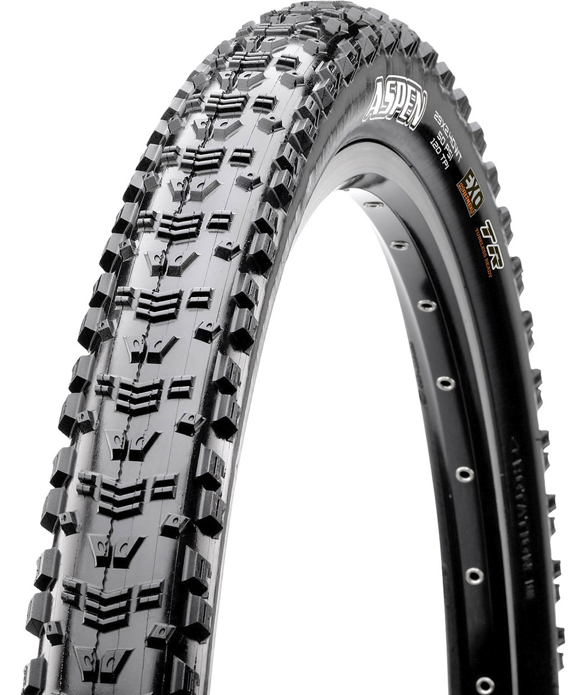 Maxxis has hit the mark again with its newest XC racing tire. The new Maxxis Aspen pushes the limits of lightweight cross country tire designed to have minimal rolling resistance. Aspen is designed with a high carcass volume to glide away through the most treacherous roots and rocks while the soft compound provides the optimum traction in turns. So if crossing the finish line first is the priority then the new Aspen tire is for you. Now available in a WT version for wheels with a 25-30 mm channel interior. ? Competition-inspired low-profile caps ? Aggressive shoulder caps ? Lightweight competition XC cover
