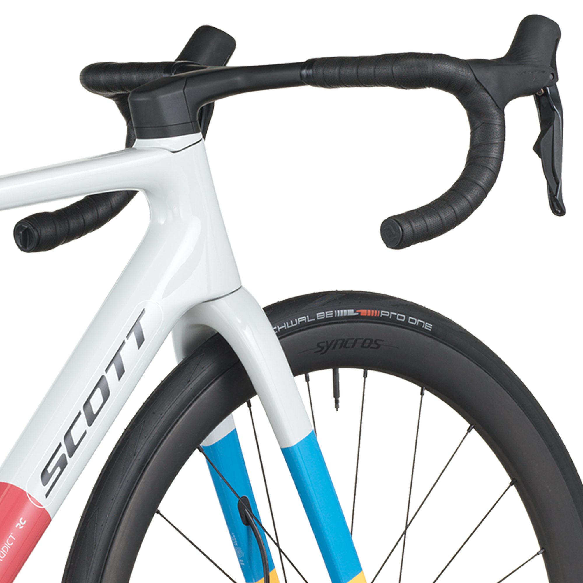 SCOTT’s commitment to making lightweight bikes is inseparable from its expertise in carbon technology. For the all-new Addict RC, we took our approach to making carbon road bikes and turned it upside down. Drawing inspiration from our approach to mountain bikes, we meticulously reevaluated our molding techniques, looking for innovative ways to improve performance on the road. The result? A significant 300 g reduction in frame kit weight compared to its predecessor, and without any compromise on race performance.