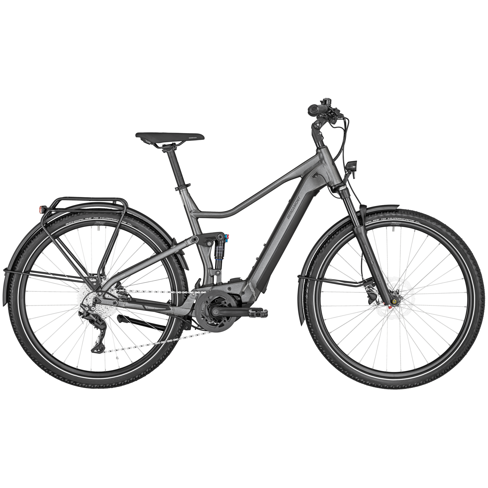 Bicicletta da e-trekking sportiva con telaio full suspension 100/80 mm, moderna unità di trasmissione Bosch e batteria PowerTube.