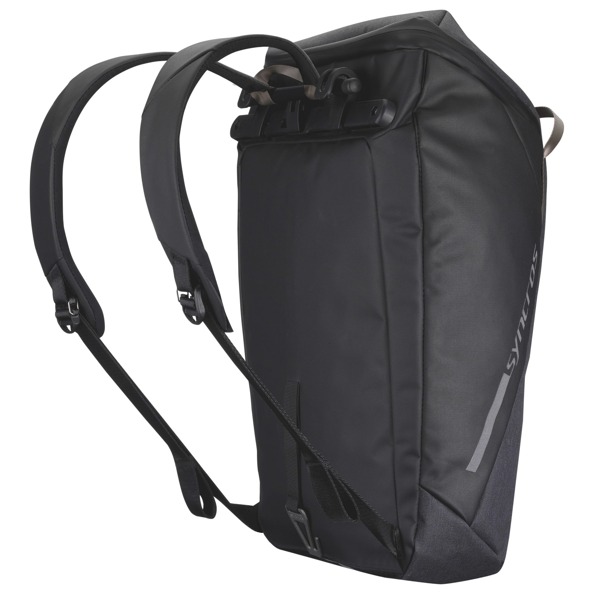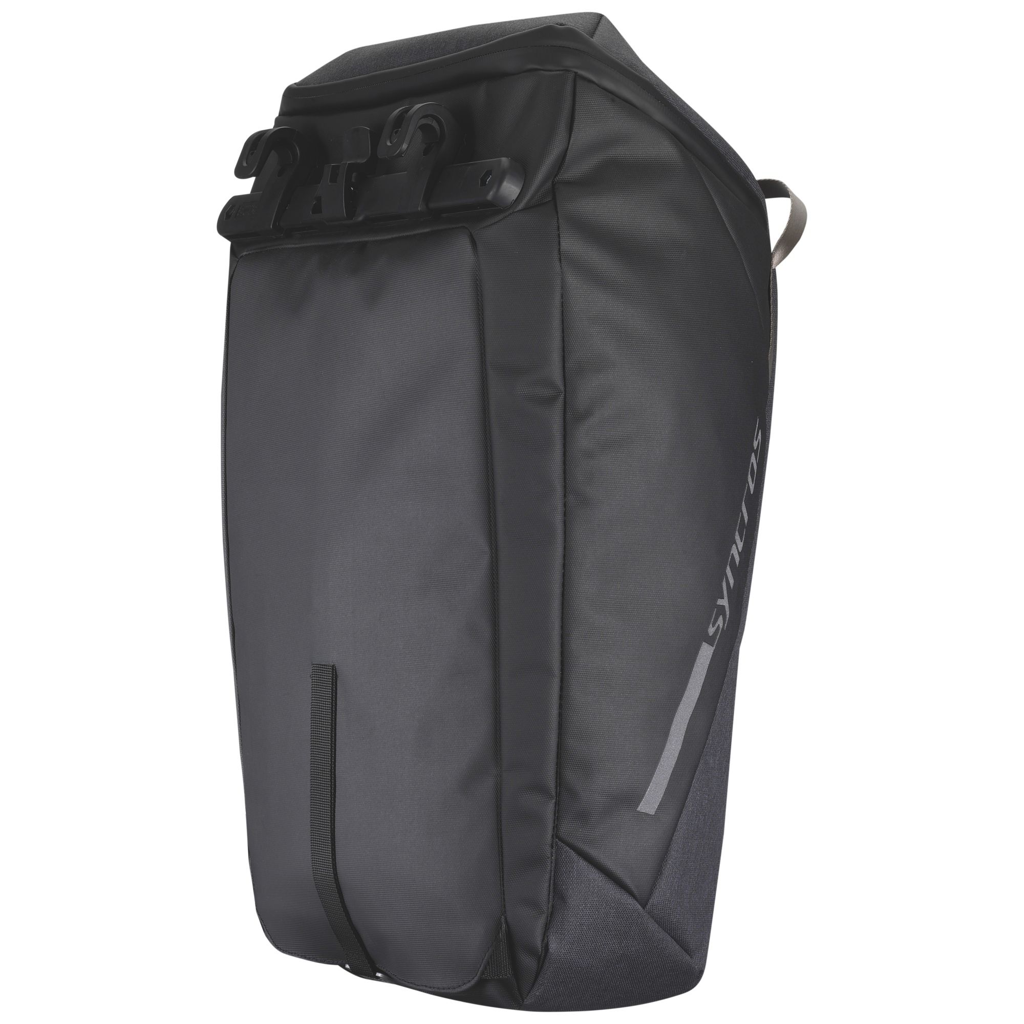 Il compromesso definitivo tra borsa per lavoratori e zaino per commissioni cittadine, il nostro zaino-borsa due in uno resistente alle intemperie è dotato di spallacci rimovibili e riponibili, ed è la soluzione perfetta per coloro che sono sempre in movimento. La chiusura superiore con cerniera permette un facile accesso mentre il sistema di fissaggio Racktime con gancio SYNCROS inferiore permette un ancoraggio sicuro alla bici. Compatibile con differenti portapacchi (tubi con misure di 9, 11 e 14 mm). Elementi riflettenti di sicurezza. Tasche organizzative interne